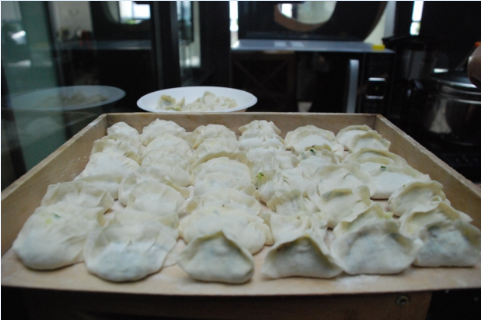 一上午的準備,中午大家品嘗著自己包的餃子,喝著啤酒,應了那句老話:餃子就酒,越吃越有。素餡、白菜豬肉、韭菜三鮮,三種餡,滿足了大家不同的口味。