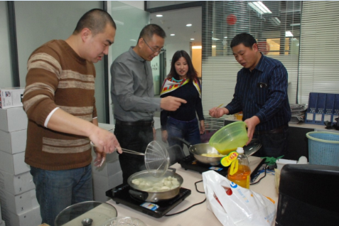 發(fā)布日期:所屬欄目:公司新聞臘月二十八(2014年1月28日),今天是放假前的最后一天上班。天津總部全體員工一早來到公司,今天大家的主要工作就是包餃子,迎新年?;蠲妗⒒铕W、搟餃子皮、包餃子、煮餃子、吃餃子,大家齊上陣共參與,其樂融融。