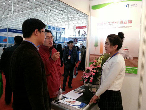 本次展會(huì)我司主要展出了陶氏丙烯酸乳液、新型水性雜化環(huán)氧樹(shù)脂及瓦克VAE乳液等產(chǎn)品。現(xiàn)場(chǎng)氣氛熱烈,我司展臺(tái)吸引眾多行業(yè)同仁前來(lái)咨詢了解。陶氏建筑用化學(xué)品華東區(qū)銷(xiāo)售經(jīng)理張申海、研發(fā)工程師陸磊也前來(lái)進(jìn)行技術(shù)支持及指導(dǎo),并同觀展咨詢?nèi)藛T展開(kāi)有關(guān)防水以及水性地坪方面的技術(shù)交流。不僅對(duì)產(chǎn)品信息采集及品牌宣傳起了極大幫助作用,同時(shí)也通過(guò)現(xiàn)場(chǎng)溝通交流維護(hù)并鞏固了新老客戶關(guān)系。對(duì)今后相關(guān)產(chǎn)品市場(chǎng)份額的提升起到了促進(jìn)推動(dòng)作用。