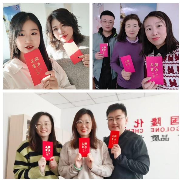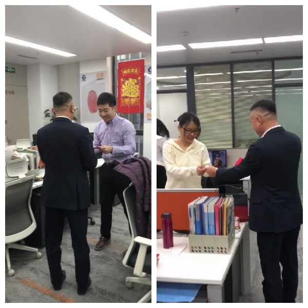 一大早,國(guó)隆人以嶄新的精神面貌重返工作崗位。尹國(guó)平董事長(zhǎng)為天津總部的同事派發(fā)開(kāi)工利是,祝愿大家新的一年紅紅火火,萬(wàn)事順意。