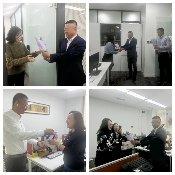 為表達(dá)對(duì)各位國(guó)隆女神的誠(chéng)摯祝福和感謝,公司特別為她們準(zhǔn)備了精美制作的手工胸針、鮮花和賀卡。三月八日上午,尹國(guó)平董事長(zhǎng)攜張學(xué)軍部長(zhǎng)、邢樹(shù)勝總監(jiān)三位男神和“隆女神”湯捷華副總一起為天津總部的女神們送上禮物和鮮花,并同女神們合影留念。